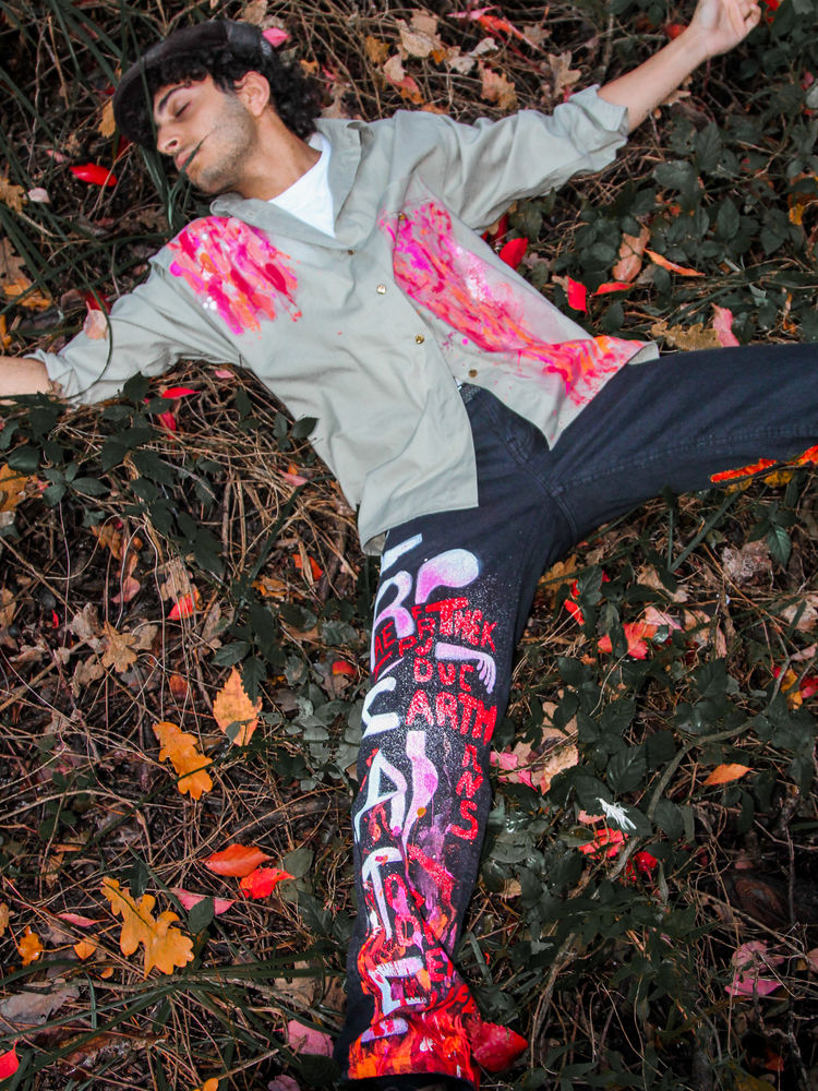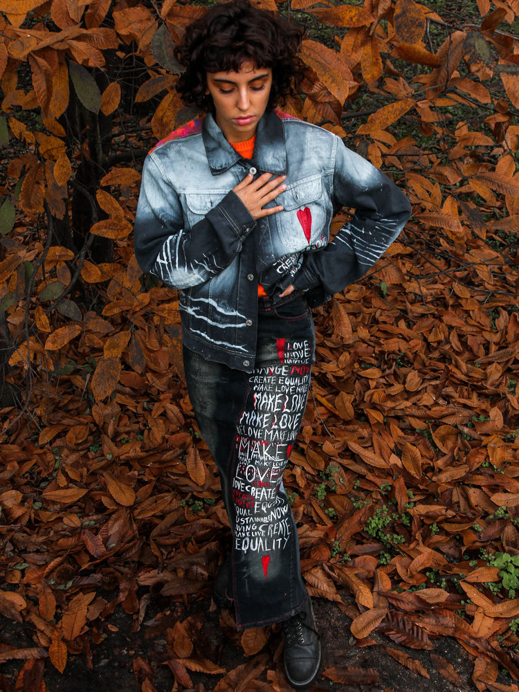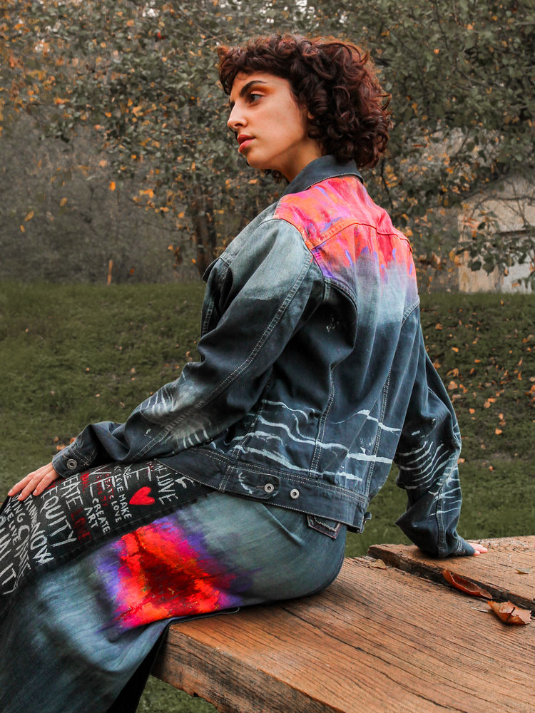 Our garments are second hand and accurately hand painted or re-designed. We give life to a new garment upcycling its life-cycle.